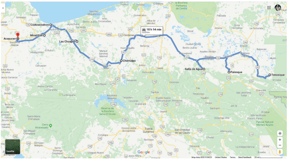 I got on the train in Salto de Agua, Chiapas. Catching the train there is a little less dangerous, but most people get on in Tenosique, Tabasco, where it’s more dangerous. Between Tenosique and Salto de Agua, the train rides through Palenque, Chiapas, where criminals hop on to mug or extort you. There, the train rides really fast. In Salto de Agua, the train goes more slowly, or sometimes even stops. There is also a really great migrant shelter there.